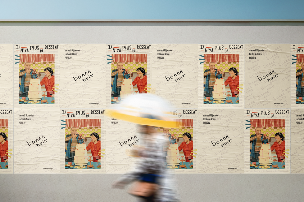 Affiche fictive réalisée d'après le clip du groupe éléctro Bonne nuit pour leur single Le Dessert.